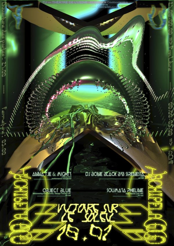 Pour cette deuxième édition de l’Archipelagogo Club, chaos clay (ex Mighty) et Anna Tje inaugureront l’évènement avec la performance ‘Victorious on the sun’ nourrie de résilience et de flamboyance – qualitées propre aux musiques (de Club) issues des communautés queers afrodescendantes, de la Disco au Ballroom en passant par la House. Avec les DJ sets de Sirenessa, Bone Black, object blue et Soumaya Phéline.